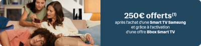 250€ offerts(1) sur votre abonnement à l’activation de l’offre Bbox Smart TV et sur demande(2)