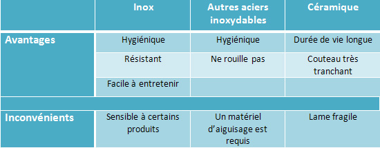Matière de la lame