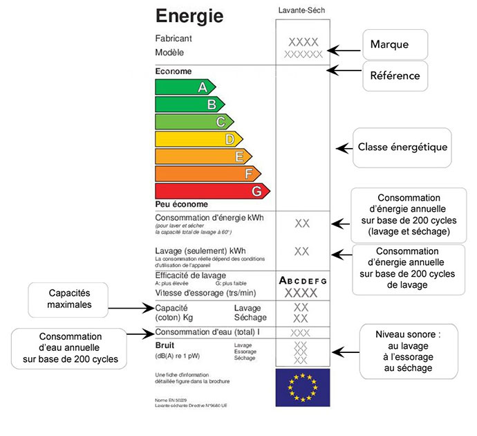 Pour choisir le lave-linge séchant qui correspond le mieux à vos attentes, il est important de comprendre les informations fournies par l’étiquette énergétique. Consommation d’énergie, niveau sonore… sont autant de critères à prendre en compte lors de votre achat.